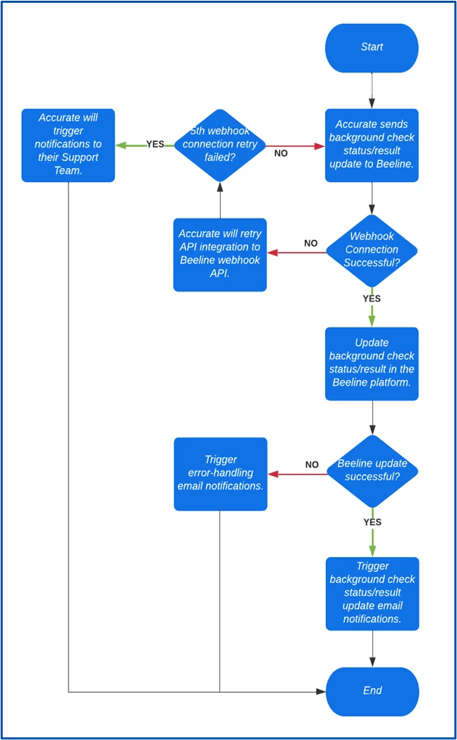The background check provider update process synchronizes the status and results of background check orders between Beeline Enterprise and your Accurate® integration. Updates are sent from your Accurate integration to Enterprise.