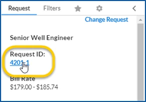 - Analyze the specifics of the request in the Request Details panel. You can familiarize yourself with the bill rate, work site location, start date, required skills, job description, and any comments.
