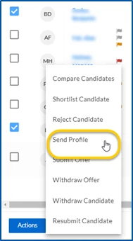 - Use the checkbox at the far left of the candidate’s name to select the candidate.