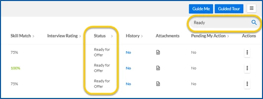 TIP: Autosuggest is available in the Search field and entries in the Candidate List are immediately filtered to match the text you’re typing.
