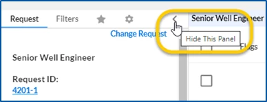 - Optional: Select the arrow at the right of the Request panel to hide the panel.