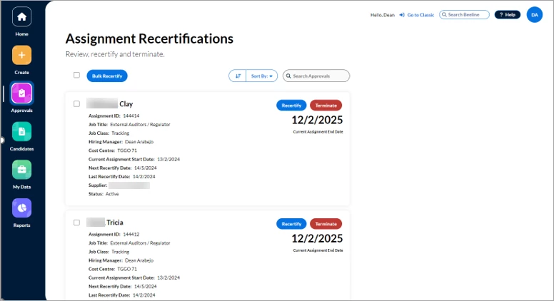 Assignment Recertifications