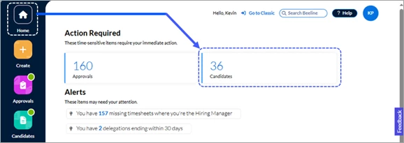 TIP: You can also click the Candidates tally number in the Action Required section on the Home screen to navigate directly to the Candidates list in the Candidates app.