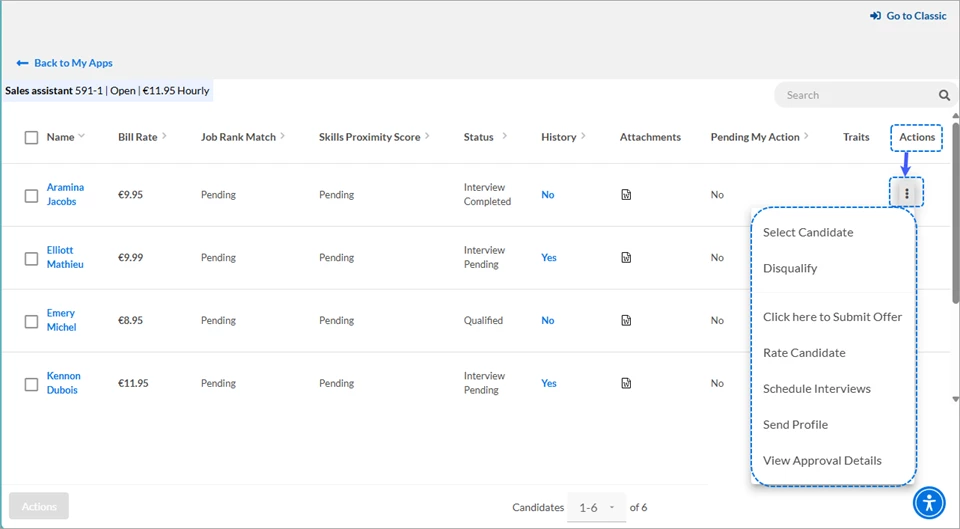 Next comes the list of submitted candidates—with easy access to take action.