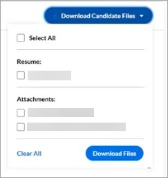 - Click the checkbox next to Download Attachments to download all available items for all the candidates listed or click the checkbox next to each respective candidate’s name to select which individual downloads you want. The Download Attachments button only activates once a selection is made. The ability to download attachments in bulk not only streamlines the overall review process but it also gives you better options for comparing one candidate to another.