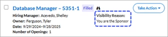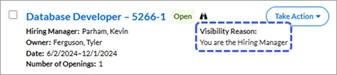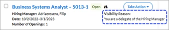 As noted, the My Data view is the system default. However, when you click Expanded View, the system sets that option as your new “favorite” or preferred view. This “favorite” setting is retained even if you navigate to different apps within the Hiring Manager Experience. It is also retained when you log out, and log back in. You can change your “favorite” back to My View simply by clicking its button tab.