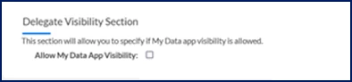 - Optional. To allow the user to view and act on your data in the My Data app, select the Allow My Data App Visibility checkbox in the Visibility section.