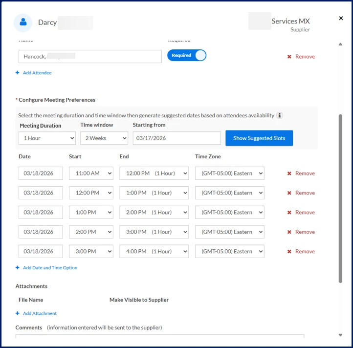 Invitations are automatically sent to attendees, the supplier and/or the program office based on your Enterprise configuration.