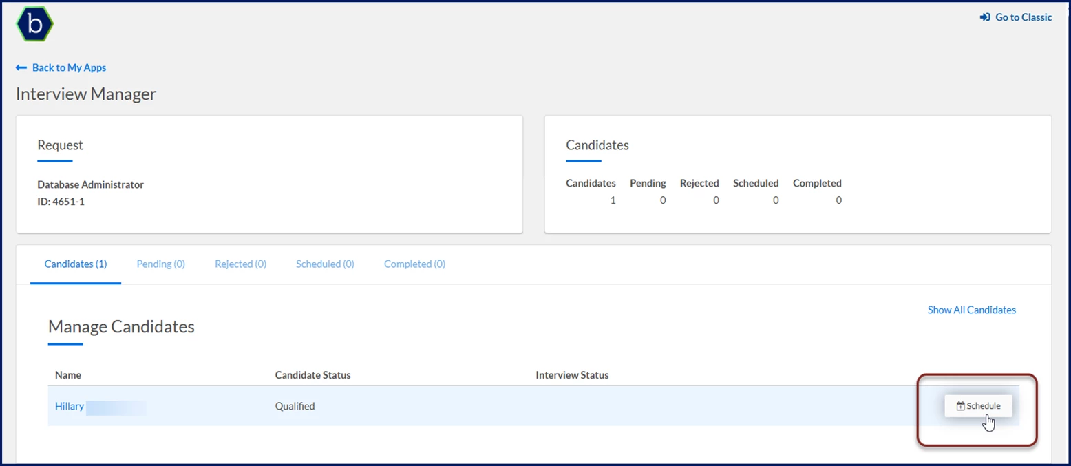 Using Interview Manager reduces the time it takes you to do your job, potentially improving your organization’s time-to-fill. Just select Schedule to get started.