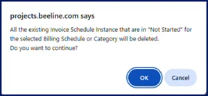 - Select OK. A message informs you that invoices in a Not Started status associated with the schedule will be deleted.