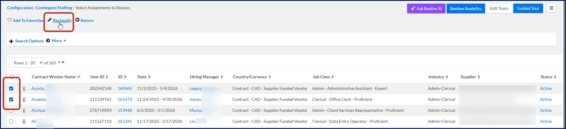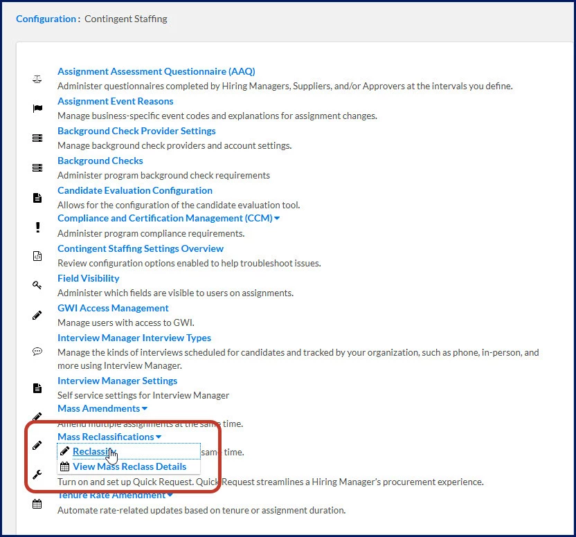 Plus, you may need to reclassify more than one assignment simultaneously. Quickly do so via self-service using the Mass Reclassification options under VMS Settings > Continent Staffing.