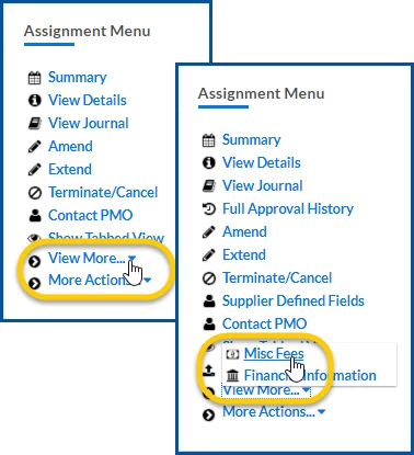 From the AssignmentMenu in the lower left corner, select More Actions>Add Misc Fee. A MiscFeeEdit page displays.