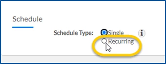 In the Schedule section, select the Recurring option for the ScheduleType. Additional fields display in the Schedule section so you can define details for the recurring miscellaneous fee.