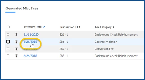 From the GeneratedMiscFees section, locate and select the EffectiveDate link for the miscellaneous fee you want to reprocess. A MiscFee page displays.