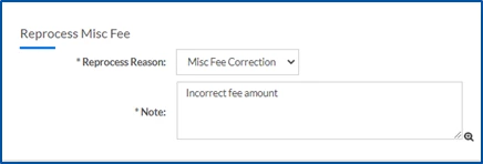 Occasionally, you might need to reprocess a miscellaneous fee after the fee is invoiced. You might need to reprocess a miscellaneous fee for any number of reasons.