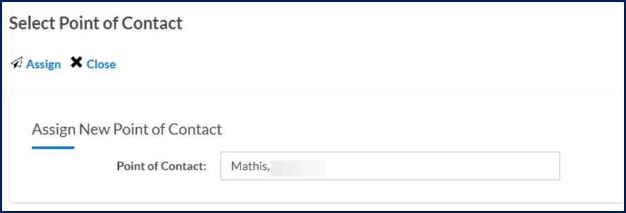 - Select Assign to add the POC. The Select Point of Contact dialog closes and the new POCs are updated in the bid.