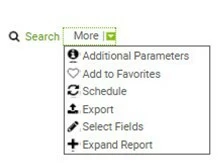 The Select Fields in the More drop-down list refers to the columns in our displayed results list. You can customize these columns, both by topic and arrangement.