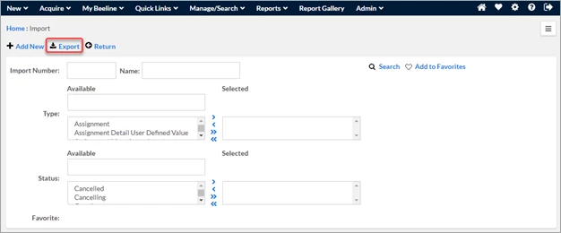 All templates can be used to import data into Beeline Enterprise; however, not all import templates can be used to create reverse imports (i.e., data exports). Check the list located here to identify which templates can be used for data exports.