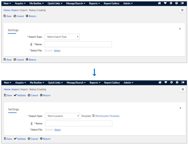 Please note: The Web Import Tool only validates and imports data that is populated into one of Beeline Enterprise’s standard import template files.