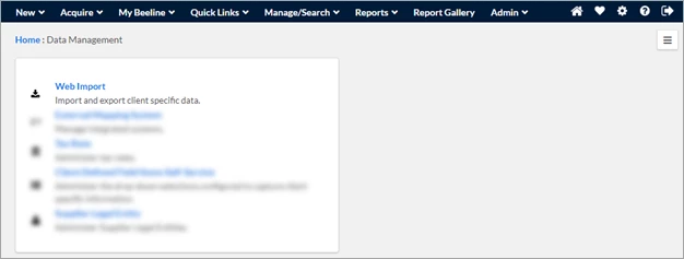 - Click Web Import in the list of options. The Data Management : Import screen displays.