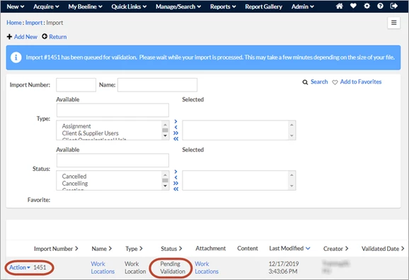 Use caution when importing data into any Beeline Enterprise site; with great power comes great responsibility! You will be responsible for ALL data you import into ANY client Beeline Enterprise site. This means that YOU are responsible for correcting any issues resulting from, or caused by, “bad data” you import into a Beeline Enterprise production site.