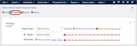 - Validate Only – grants users the ability to download an import template file, populate data into it, and then validate the completed file prior to import.
