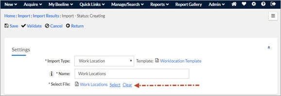 - Click Clear to remove your prior import file, then use the same select. upload, and validate steps to process your revised (corrected) import file.